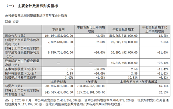 财联社10月30日电,比亚迪(002594.SZ)发布2025年第三季度报告,第三季度营收为1949.85亿元,同比下降3.05%;净利润为78.23亿元,同比下降32.60%。前三季度营收为5662.66亿元,同比增长12.75%;净利润为233.33亿元,同比下降7.55%。